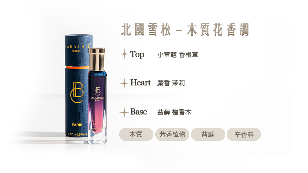 《北國雪松》像一場靜靜落下的雪,世界被覆蓋成溫柔的白。氣味初現,小豆蔻的微辛在空氣中輕輕跳動,如寒冷中仍保有溫度的呼吸。隨後,雪松挺立而出,乾淨、筆直,帶著北方森林的清冽氣息,苔蘚的濕潤氣味在腳邊蔓延,讓人感到貼近土地。最後,檀香木與香根草慢慢收尾,木質的溫潤與泥土的深沉交織,留下安靜而持久的餘韻。《北國雪松》是一種不張揚的陪伴,像冬日裡的森林,冷冽卻讓人安心。