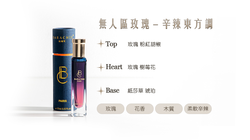 《無人區玫瑰》像荒原上孤獨綻放的花,柔軟卻帶著不容忽視的力量。前調的玫瑰與粉紅胡椒交織,甜美與微辣同時撞擊感官,像烈日下的熱風,既鮮明又充滿張力。中調的玫瑰與樹莓花層層綻放,花香柔軟而多情,像在荒涼中守護著自己的秘密。最後,紙莎草與琥珀沉穩落下,木質與溫暖的餘韻將整體收束,既深沉又持久。《無人區玫瑰》是一款帶著孤寂魅力的香氣,在柔軟與辛辣、甜美與沉穩之間,悄悄講述屬於自己的故事。