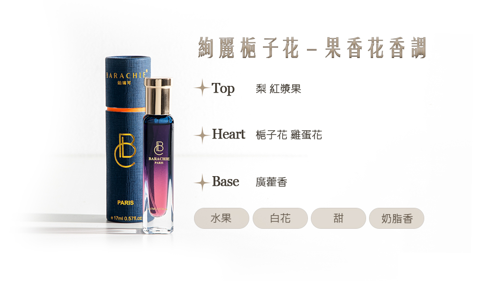 《絢麗梔子花》像夏日午後的陽光花園,明亮而甜美。前調的梨與紅漿果清新果香,像陽光灑落在露水晶瑩的果實上,帶來輕盈與愉悅。中調的梔子花與雞蛋花悄然綻放,花香柔美而細膩,帶著微微奶脂感,如溫暖的光輕撫心間,甜美而純粹。最後,廣藿香沉穩收尾,木質氣息與花香融合,餘韻悠長而深邃,像花園裡靜謐的午後,香氣悄悄停留在空氣中。《絢麗梔子花》是一款甜美果香與柔和白花交織的香氛,如陽光般溫暖明亮,令人心情舒展,悄悄留下幸福感。