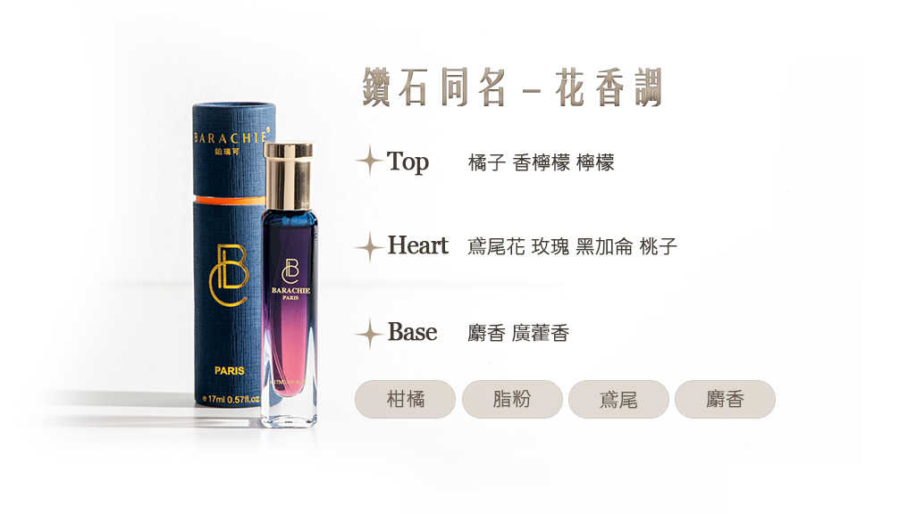 《鑽石同名》像晨光灑落在花園裡的第一縷光,清透而閃耀。前調的橘子、香檸檬與檸檬明亮清新,像晨風輕拂臉龐,帶來輕盈而愉悅的氣息。中調的鳶尾花、玫瑰、黑加侖與桃子層層綻放,花香與果香交織,柔軟中帶著甜美的脂粉感,如晨露映照下的花瓣,優雅而迷人。最後,麝香與廣藿香沉穩收尾,木質與肌膚相融,餘韻悠長,溫暖而貼近心靈。《鑽石同名》是一款清新、優雅又帶細膩甜意的香氛,如晨光下閃爍的花園,悄悄點亮每一天。